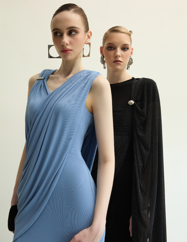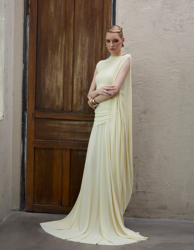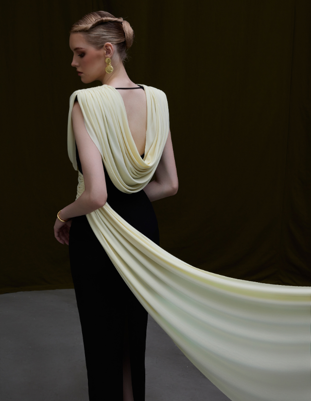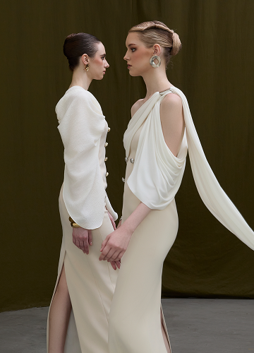 Each piece in the collection is designed to capture that duality: the grace of flowing silhouettes, the strength of bold structures, and the effortless beauty of standing fully in one’s essence.